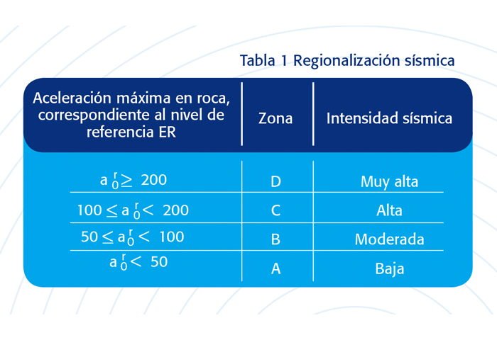 Para determinar la zona sísmica se tomó en cuenta el valor de la aceleración máxima en roca, para el nivel de referencia dado en el ER. (Ver tabla 1)